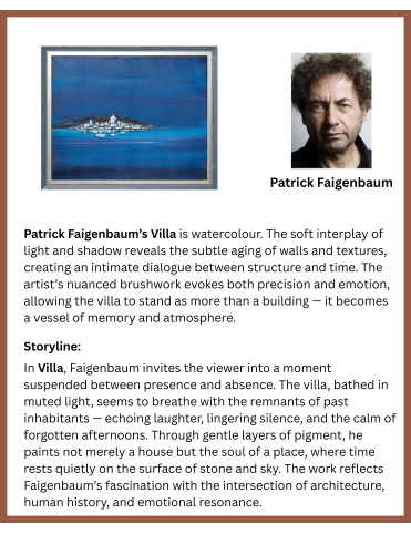 Island in Blue is a minimalist seascape that beautifully captures the quiet charm of a coastal village floating in a sea of deep indigo and turquoise hues. The small island, dotted with whitewashed buildings and a prominent chapel-like structure, glows gently against the vast, serene blue background. The gradient brushstrokes evoke calm ocean currents and a boundless sky, creating a dreamlike atmosphere. Encased in a sleek silver frame, this artwork speaks to solitude, simplicity, and the allure of remote beauty — perfect for contemporary or nautical-themed interiors.