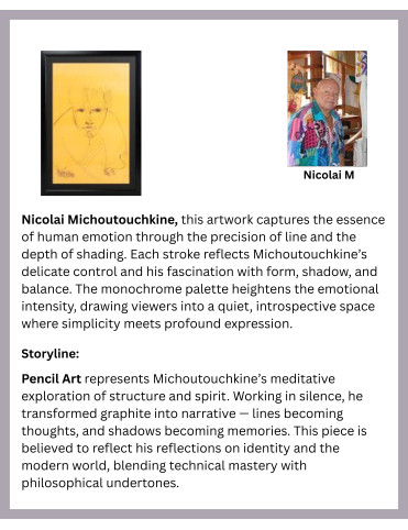 “Nicolai M Arts 1” showcases a modern blend of abstract creativity and expressive detailing. The artwork features bold shapes, refined textures, and a balanced composition that highlights the artist's unique visual identity. Its contemporary style evokes emotion, movement, and artistic depth, making it a standout piece suitable for galleries, portfolios, or digital showcases.
